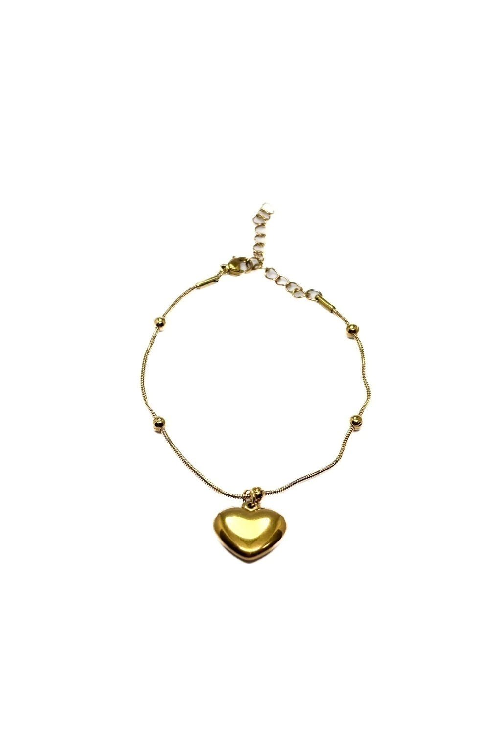 Pulseira Coração e Bolinhas em Aço Inox: Delicadeza com presença marcante